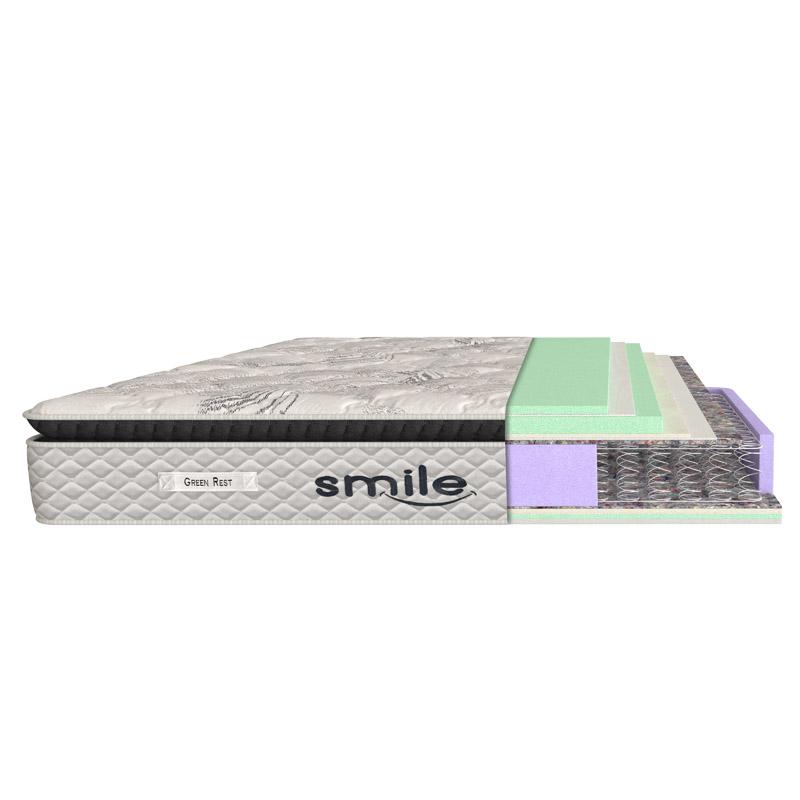 تشک اسمایل از سری تشک های پد دار با فنر متصل و پارچه گردبافت، ترکیبی از راحتی و پشتیبانی عالی را برای یک خواب بی‌دغدغه فراهم می‌آورد. پد تشک با اسفنج یورولوکس ۴ سانتی ساخته شده که حس نرمی و ارتجاعی فوق‌العاده‌ای به سطح خواب می‌بخشد و از فشار روی نقاط حساس بدن جلوگیری می‌کند. این اسفنج با چگالی بالا، طول عمر بالایی دارد و در طول زمان شکل خود را حفظ کرده و به راحتی تشک می‌افزاید.